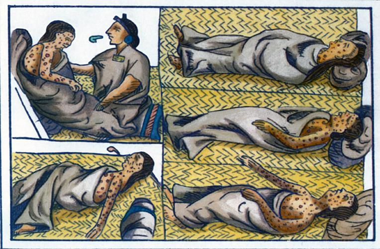 Epidemia de la viruela en México, tomada de la Historia General de la Nueva España, también conocida como Códice Florentino, elaborado por indios mexicanos bajo la dirección de fray Bernardino de Sahagún, entre 1540 y 1585