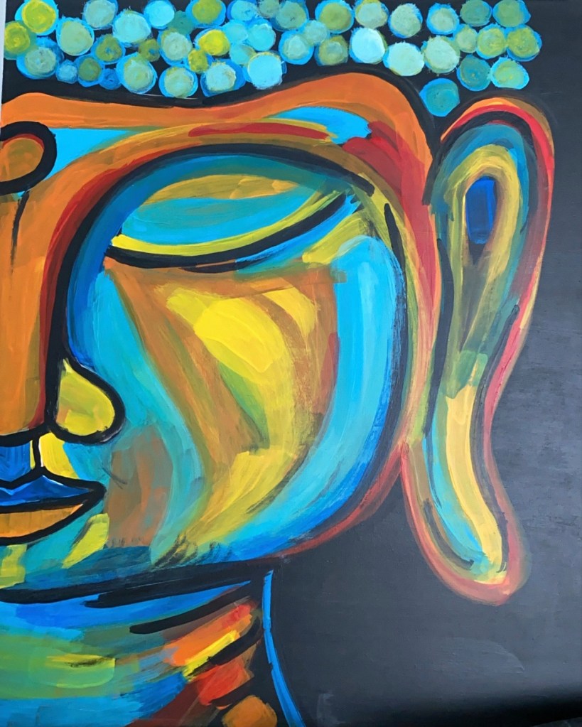 Buda y Atrapasueños son mis dos obras como aprendiz de pintora. Llegaron como esa pluma que vuela y se aferra a tu camisa color negro y de la nada te saca una sonrisa de desconcierto. En un momento que no imaginaba; inmejorable combinación.