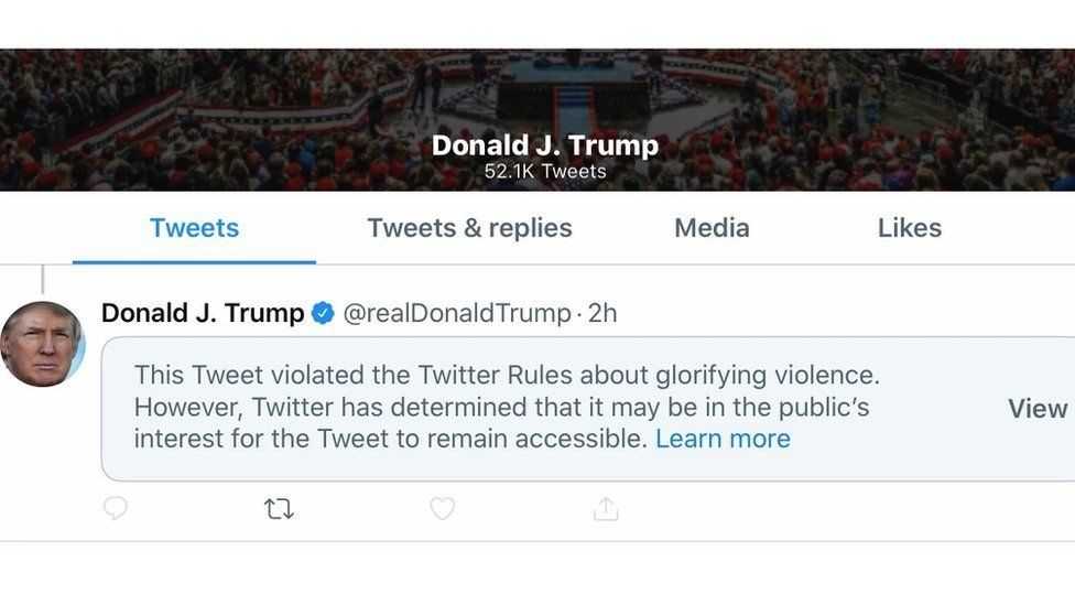 La última bravata de Trump se debe a que Twitter ocultó por vez primera detrás de una advertencia, un tuit que violaba sus reglas al glorificar la violencia. El presidente afirmó: “Cuando comienzan los saqueos empiezan los balazos”, aludiendo a las protestas escenificadas por la muerte del afrodescendiente, George Floyd, bajo custodia de un policía blanco en Minneapolis. La frase de Trump había sido expresada en 1960 por un policía blanco. La decisión del CEO de Twitter escaló las contradicciones de Trump con las grandes tecnológicas. “Este tuit infringió las reglas de Twitter sobre glorificación de la violencia. Sin embargo, Twitter ha concluido que puede ser de interés público que el tuit siga estando accesible”, adujo Jack Dorsey. Trump estaba indispuesto. Twitter había calificado antes que sus tuits contenían información dudosa.
