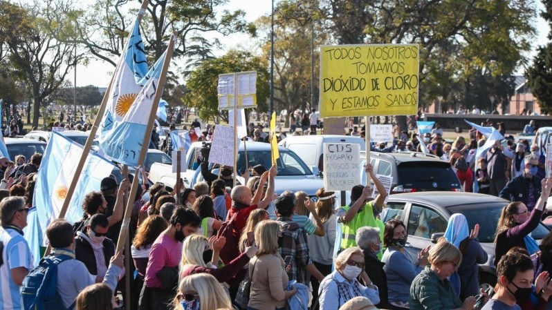 Los manifestantes mostraron pancartas a favor del compuesto con el lema “Todos nosotros tomamos dióxidos de cloro y estamos sanos”, según reportó el diario Rosario3 (https://www.rosario3.com/informaciongeneral/Banderas-a-favor-del-consumo-de-dioxido-de-cloro-en-la-marcha-del-Monumento-20200817-0030.html), luego de que días antes el Ministerio argentino de Salud volviera a desaconsejar su uso tras conocerse la muerte de un niño de cinco años en Neuquén (sur) y de un hombre en Jujuy (norte) que habían ingerido el compuesto.