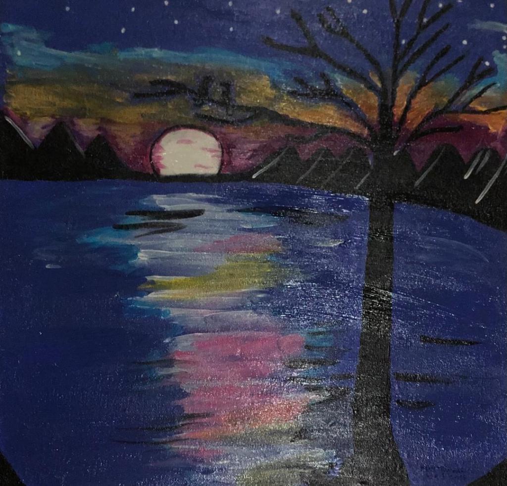 Me encanta pintar con pintura acrílica y escojo para mis cuadros la naturaleza. Disfruto pintando y cuando lo hago me gusta escuchar música; eso hace que me olvide de los problemas y de la pandemia que agobia al mundo.