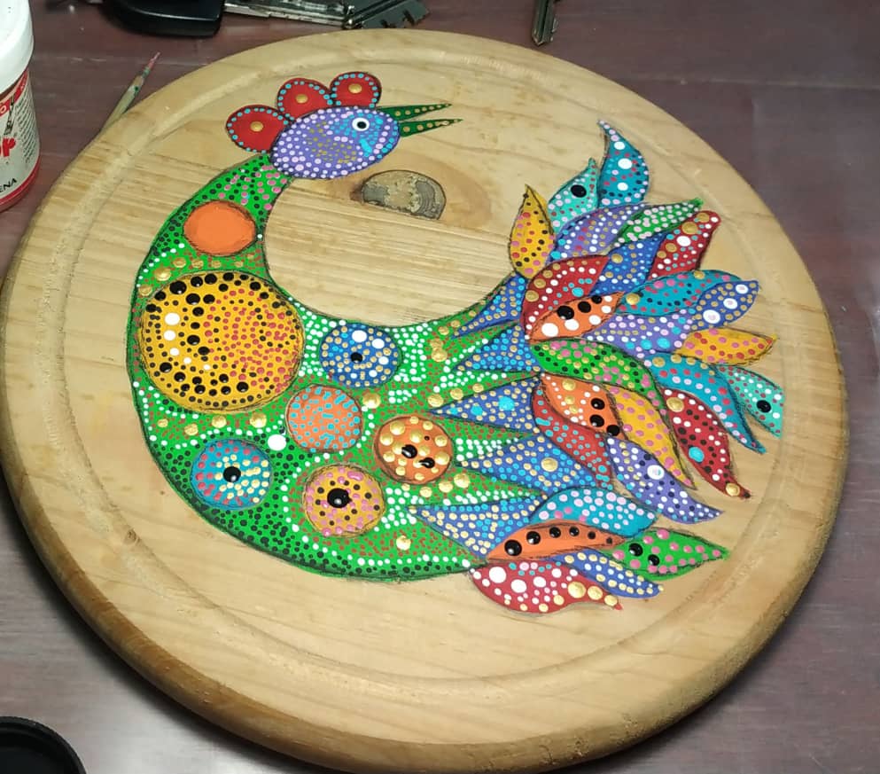 En una nueva entrega de su arte pictórico, el artista venezolano Cheo García Araujo nos envió cuatro piezas de su colección de obras con figuras de gallitos, realizadas bajo la técnica del puntillismo.