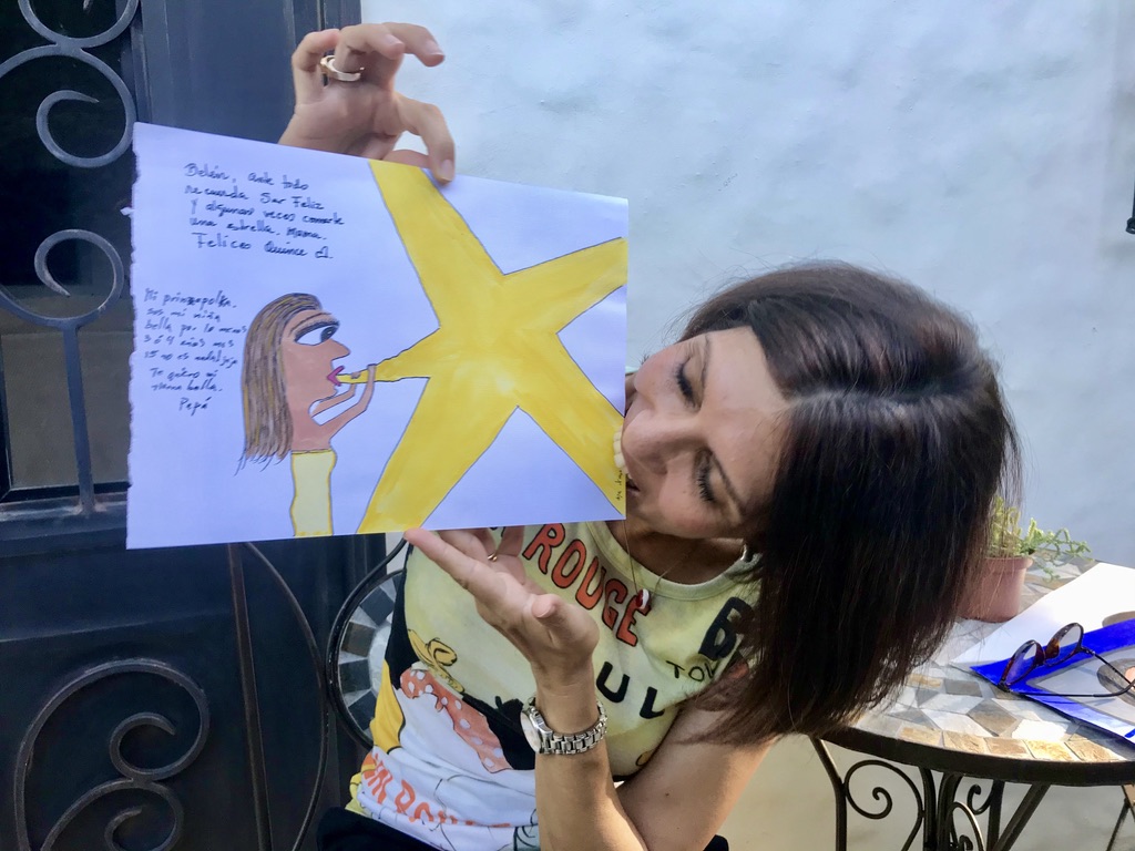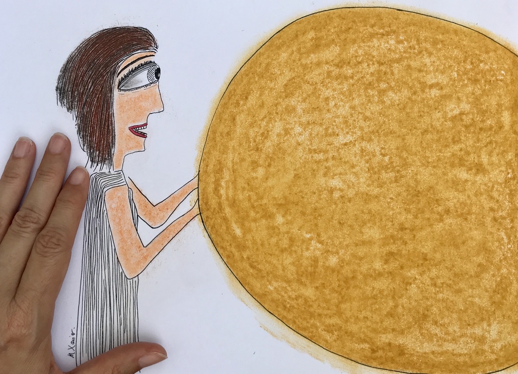 6. Cómete una estrella… Lo hice para dárselo a mi hija en sus quince años, me inspiré en el poema en inglés “Antidotes to Fear of Death” by Rebecca Elson (Antídoto al miedo a la muerte). Le dije a Belén que cada vez que necesite vencer los miedos se coma una estrella, yo me he comido varias, a veces saben un tanto ácido, son granuladas o arenosa. Cuando te comas una intenta no arrugar la cara, hace como si fueses una guerrera, una escudera vikinga o una india con su arco y flecha. Ilustración del julio de 2020