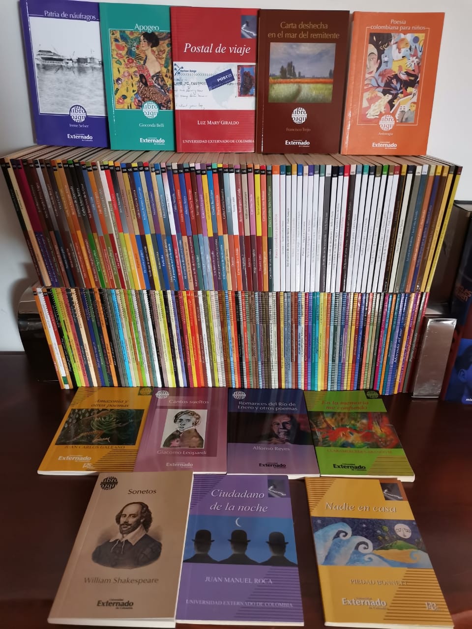 A lo largo de 18 años ininterrumpidos, la colección ha alcanzado 179 títulos, entre los cuales hay nombres representativos, no solo de la poesía colombiana, sino autores contemporáneos y clásicos universales en lengua castellana y otras como José Asunción Silva, Piedad Bonnet,  Pablo Neruda, César Vallejo, Alfonso Reyes, Gioconda Belli, Antonio Machado, Baudelaire, Shakespeare, Giacomo Lombardi e Irene Selser. Próximamente, compartiremos una edición del gran poeta portugués Fernando Pessoa, traducido por la poeta colombiana Lauren Mendinueta, residente en Lisboa.