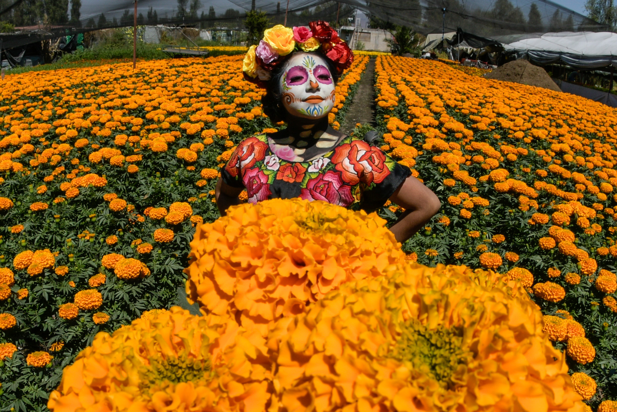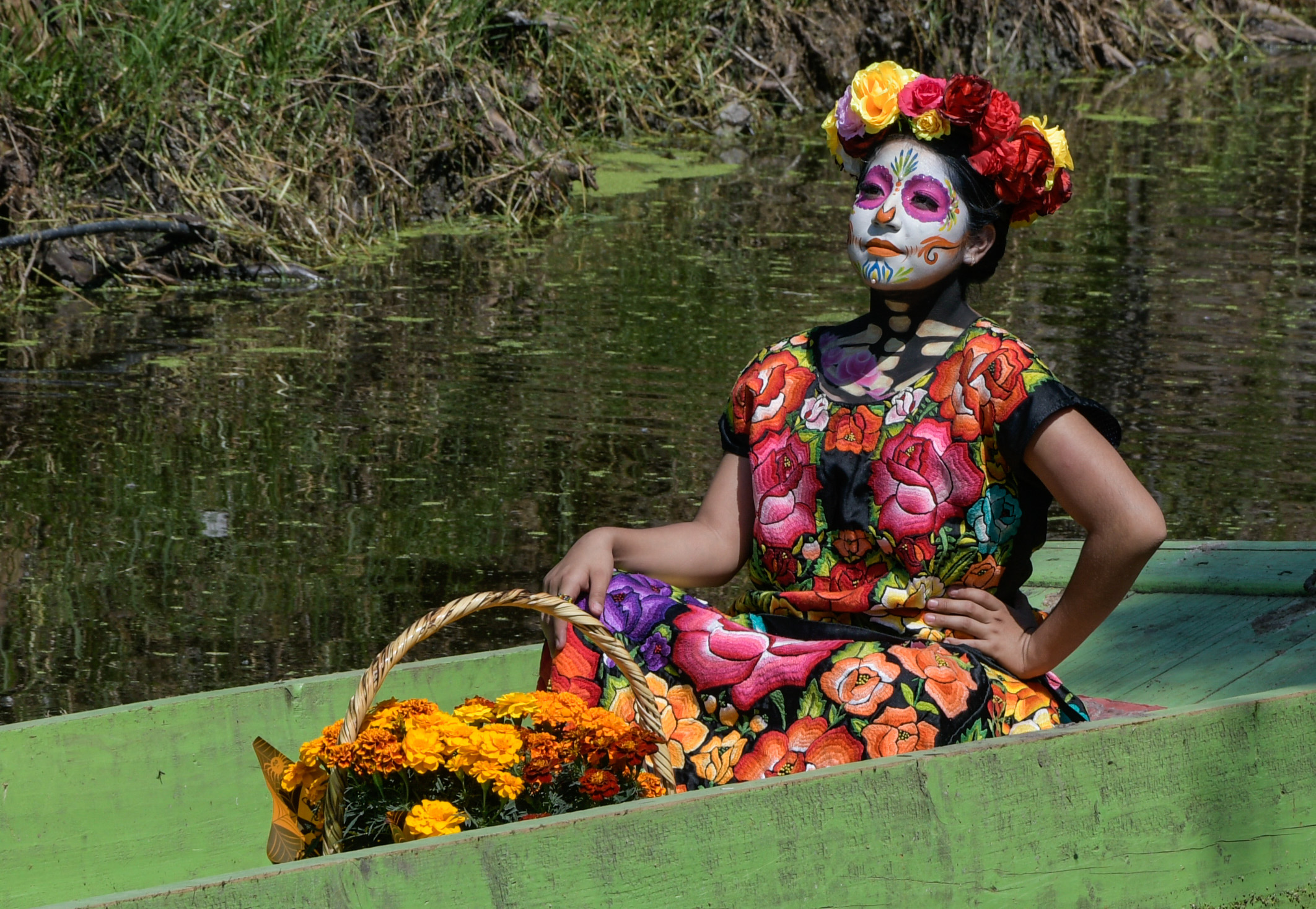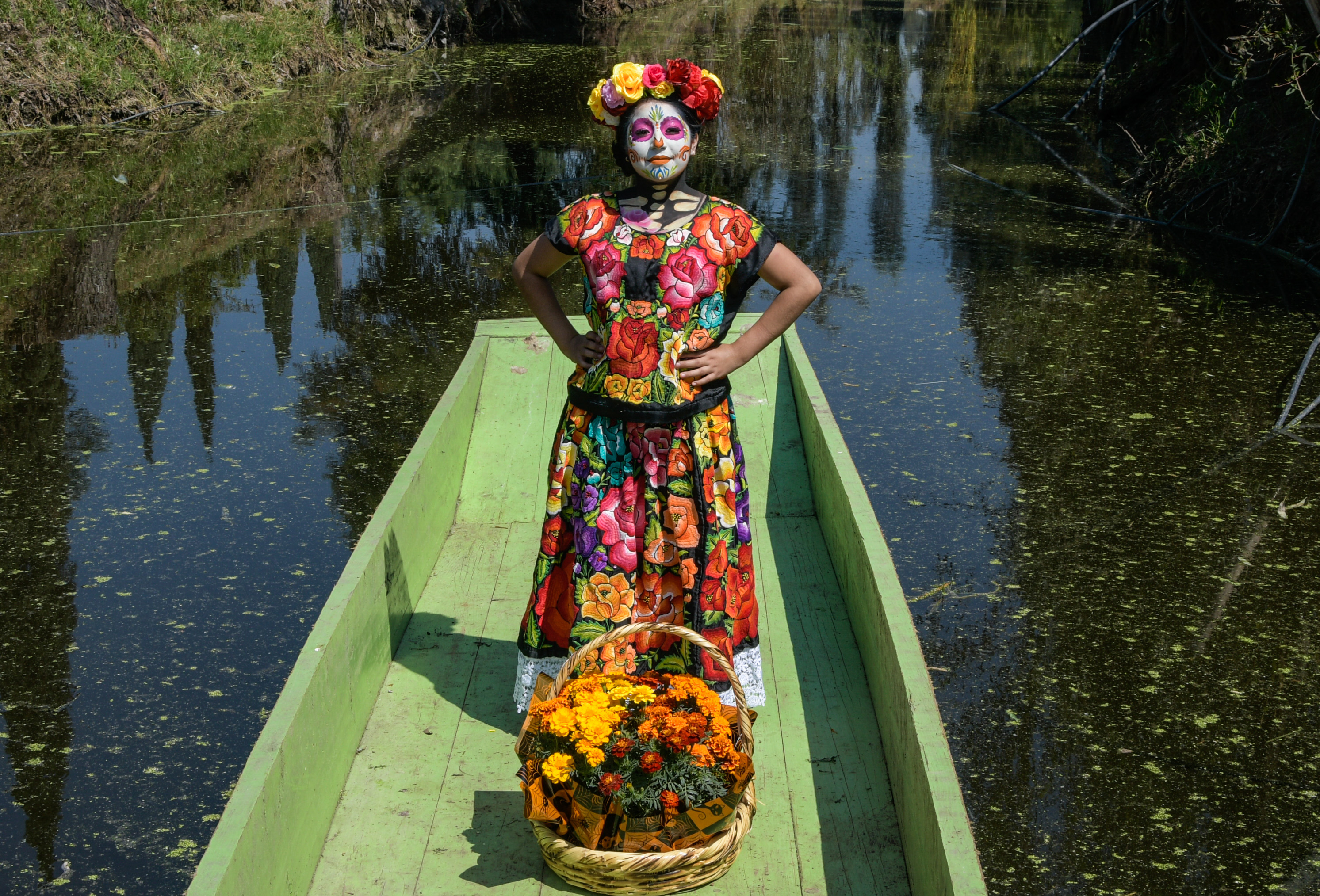 La querida Regina, hija de la fotoperiodista y colaboradora permanente de Diarios de Covid-19, Aracely Martínez, celebró a su manera el Día de Muertos yendo a pasear, con el tradicional atuendo de catrina, a uno de los sitios distintivos de la Ciudad de México: el epicentro de las flores, Xochimilco.