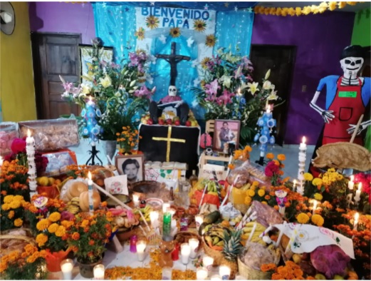 Su cuerpo y espíritu recordaba con sentimiento, mientras su quijada temblorosa no sabe si reír o endurecerse para dar paso al llanto de la memoria insistente de su hermano mayor mientras observo, a su lado derecho, la ofrenda que –montada al detalle– deslumbra el interior de la casa. A la salida ofrecen tamales y café sin distinción, en algunos casos pan de muerto rebanado.