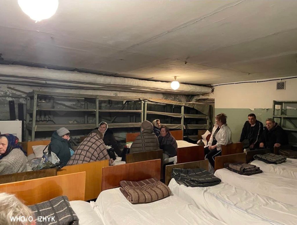 Personal del hospital en Novovolynsk, en el oeste de Ucrania, traslada a pacientes a un refugio subterráneo para mantenerlos a salvo después de las sirenas de ataque aéreo /OMS Facebook.