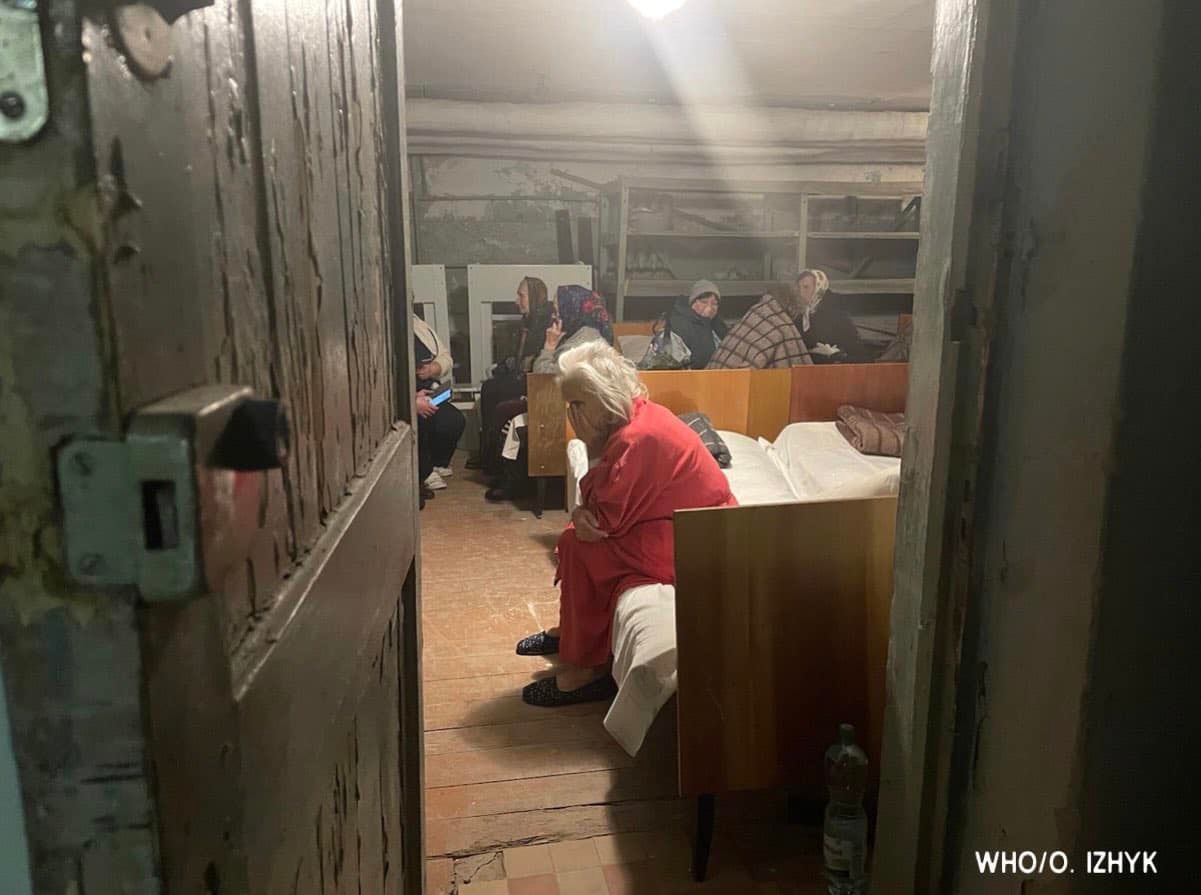 Personal del hospital en Novovolynsk, en el oeste de Ucrania, traslada a pacientes a un refugio subterráneo para mantenerlos a salvo después de las sirenas de ataque aéreo /OMS Facebook.