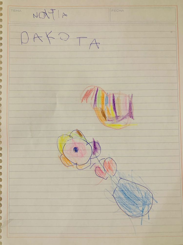 Nayla Dakota tiene cuatro años y nos compartió este dibujo sobre un episodio de su vida en pandemia.